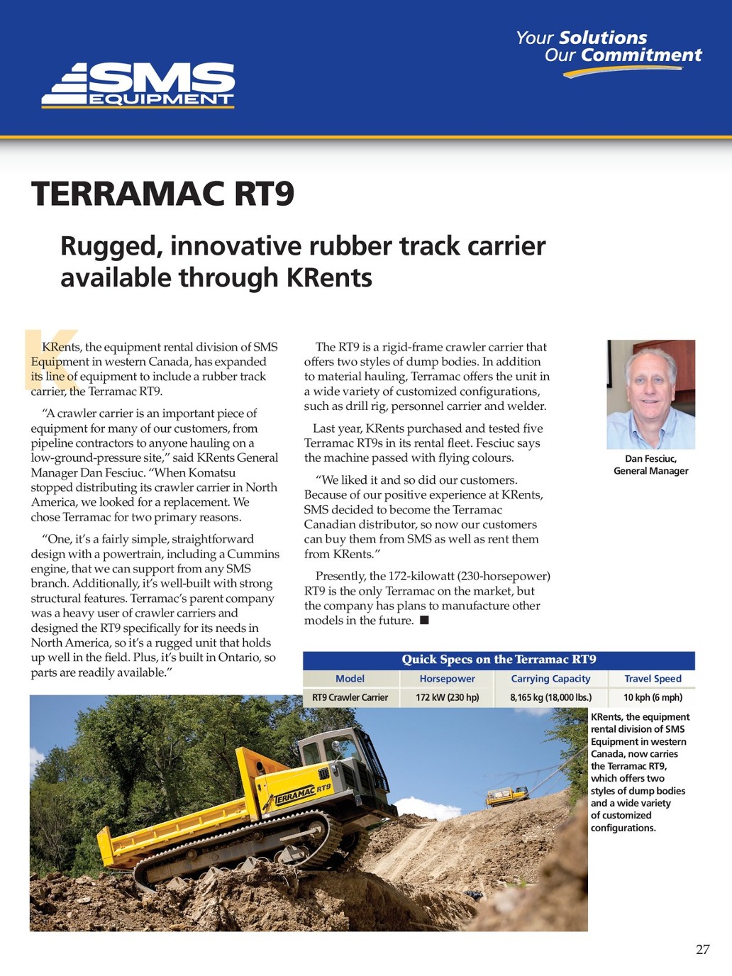 SMS Equipment released its first 2015 edition of their Solutions Magazine publication which is distributed across their Canadian customer base. Included in this issue was a featured article formally announcing the addition of North American made Terramac® rubber track crawler carriers to their customer offerings!