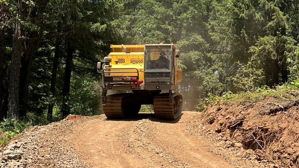 Weekly added, “We looked at the specs and the capabilities Terramac offers and knew they were going to be what we needed. The ability to drive directly to the point of dumping or point of loading and rotate to dump is a major advantage. The operators can pull up to where we are working, turn the bed, offload and drive out without backing up like is needed with a truck. We’re also working on a road that’s right up against a slope on one side, so the Terramac’s ability to work in limited space is very helpful.”